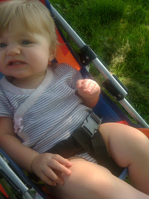 And here are some pictures of the kids pushing Essie’s stroller around in the grass (not so easy)…