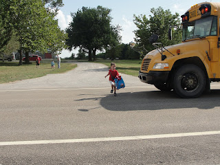 Oh my, Henry looks so big in these pictures! I can't believe how fast they are growing! Love the school bus pictures of him running towards you…that's a keeper forever.