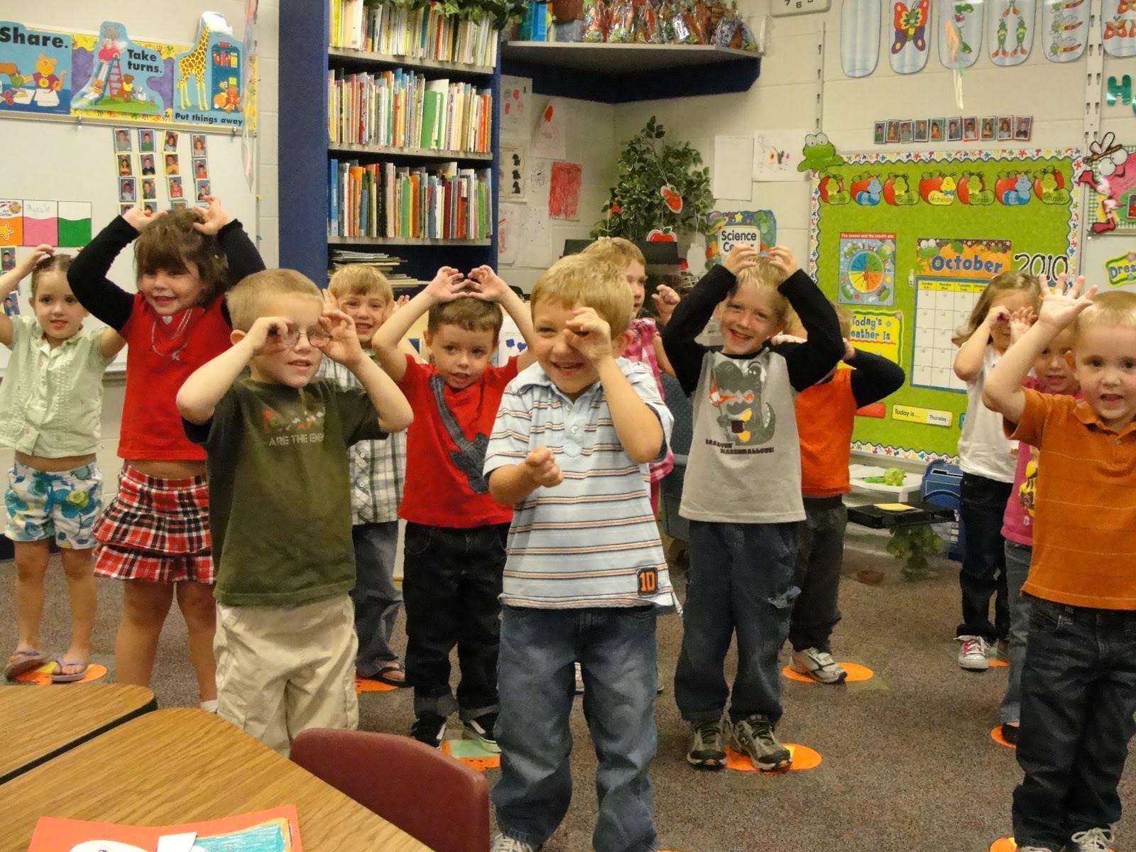 Apparently, the class sang several songs…or rather, PERFORMED several songs. There were actions and singing and who knows what else (Henry’s in red).