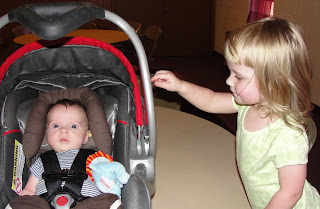 Yesterday, we took our first semi-long trip with Ervin. We celebrated T’s Grandma’s birthday in Hillsboro, a couple of hours away. Of course, I was a little nervous about it. Either we were going to get there really late because Ervin got hungry part way there and we would have to stop for a long time while he ate (he’s a slow eater), or we were not going to have to stop and we’d get there super early.