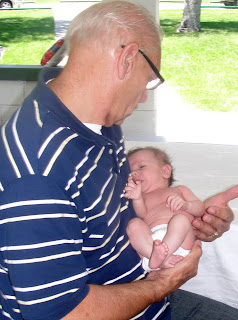 The naked baby is a result of a diaper blow out. At least it was warm (the weather and the poop, I guess).