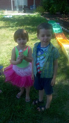 The oldest three spent Sunday with my parents while T., Erv, and I were working a jewelry booth at a vendor fair (the vendor fair about which I promise to stop talking). Anyway, apparently Ivy made a new friend.