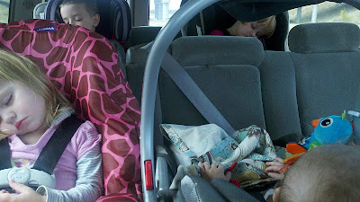 We went to Salina this weekend for my uncle’s wedding, which is about two and a half hours away.This is what happens when we get in the car (and three of the kids have had Dramamine because they all get car sick):