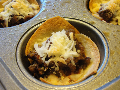 I sprayed the muffin tin, smooshed the tortilla circles in each muffin portal, filled them up and baked them at 425 degrees for 12 minutes or so.