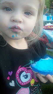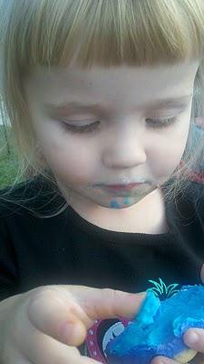 This is a series of photos of our youngest girl, E. Blue…er, Belle, eating a Cookie Monster cake at my niece’s 1st birthday party.