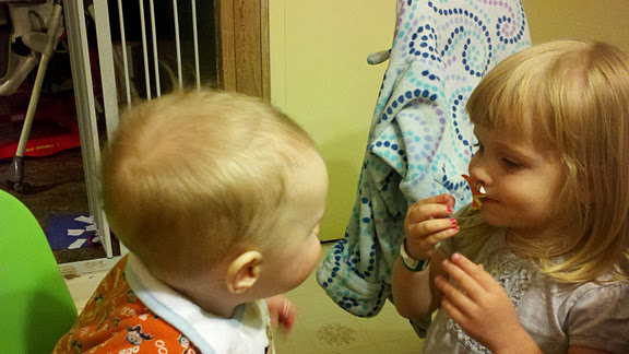 And E.B. loves that he’s in there, too, because it gives her something to do while she’s wandering around and not eating her supper.