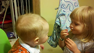 Like, for instance, sticking a sticker on his nose, then her own, his, then hers.
