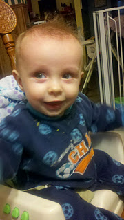 Now, instead of rolling around on the floor or sitting in his bouncy chair while we eat supper, he sits in his big boy chair with us.