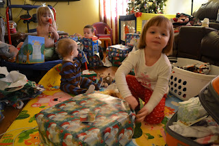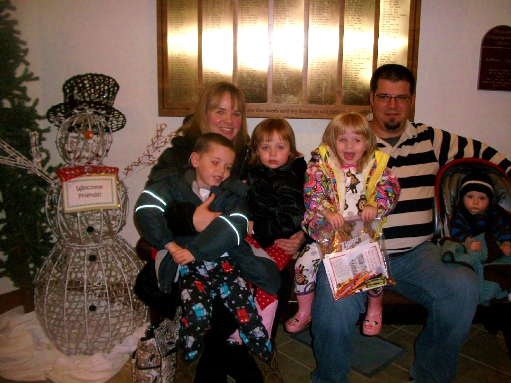 We went to the Christmas Eve service at church. The kids were in their pajamas (since it started at 8:00 pm and the drive home is 40 minutes long).