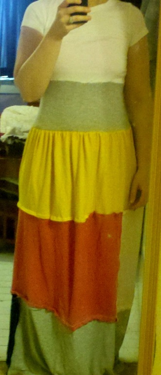 I got the idea from two different pins on Pinterest. One was this jersey maxi dress, and the other was actually an infant dress. I’m not much of a tutorialist (although, I am pretty good at making words up), so I encourage you to check those out if you’re having trouble here. Ahem.