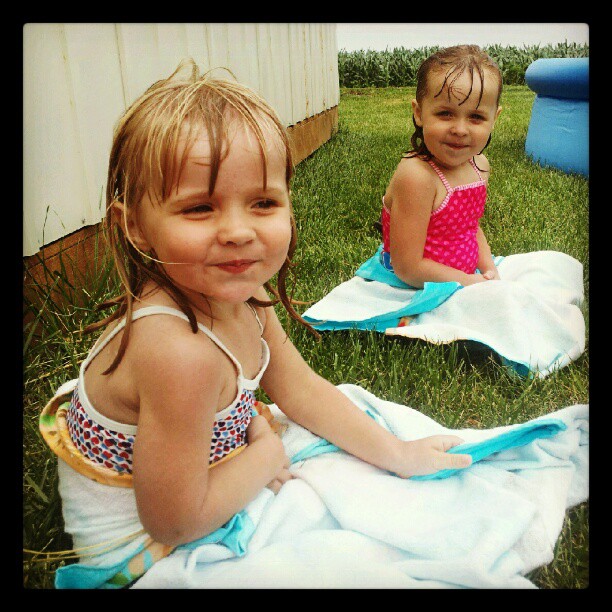 We got the pool set up over the weekend and it was cold. It didn’t stop the kids, but they did get out and wrap up after a while.