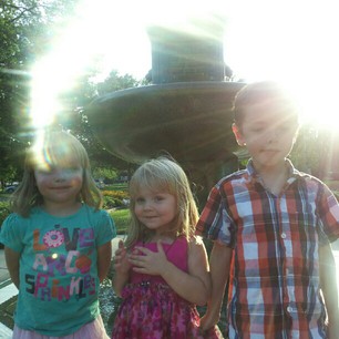 Friday was the last day of bible school. The kids sang their songs for us that they learned this week, and then we had a picnic outside. I took this picture of them in front of the fountain. I know there’s too much light, but I had a limited amount of time and they didn’t want to look into the sun. Plus, I think it turned out kind of cool.