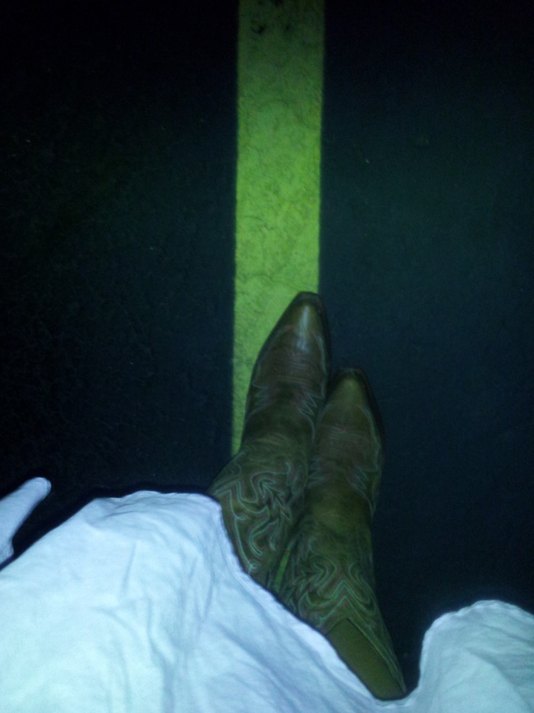 Yeah, I live in the country and have ridden horses before. But I’m not a cowgirl by any stretch of the imagination. I do love these boots, though. Aren’t they adorable?! They’ve got the prettiest pink and blue stitching over a gorgeous vintage-looking leather. And they are comfy. I have extraordinarily large calves (I normally have to special order my boots, y’all), but these 11 inch high ones were perfect.