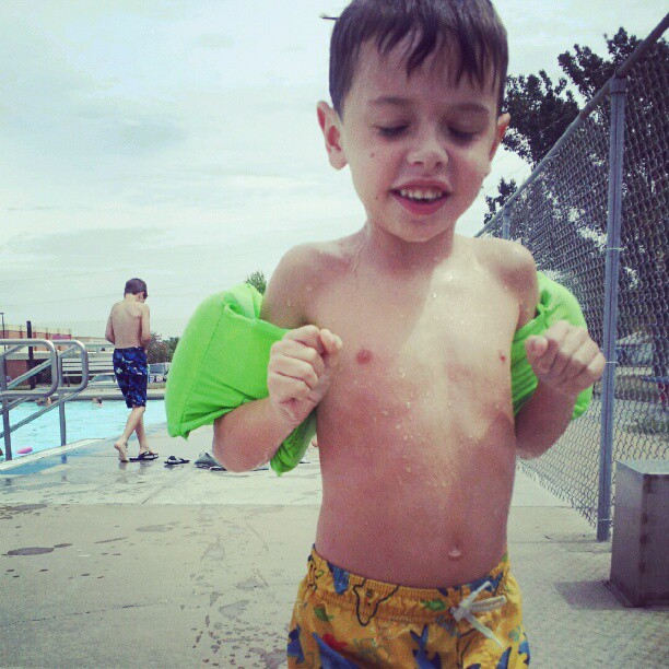 First birthday party of the school year. In August, it should have been at least 90, maybe 95-100 degrees. It was 82. The pool water (from what I gather) was FREEZING.