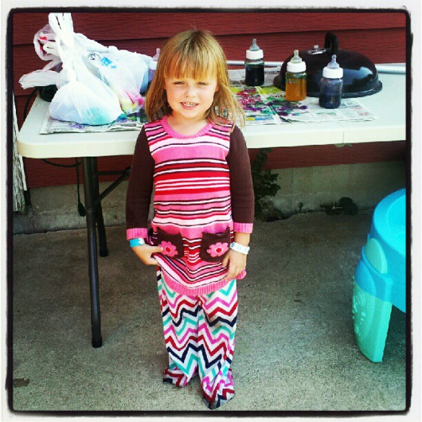 T and Henry were off doing home brew (not even kidding), so the girls and I used up the last of the tie dye kit from the rainbow party.
