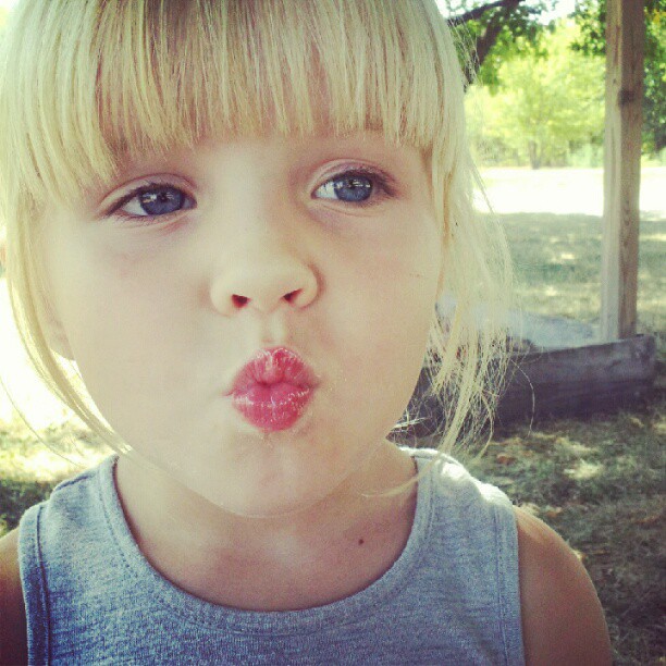 Another picture that I LOVE. Essie requested lip gloss right before we went outside to wait for Ivy’s bus. When we got outside, well…I saw how very bright it was. Pucker up, Buttercup.