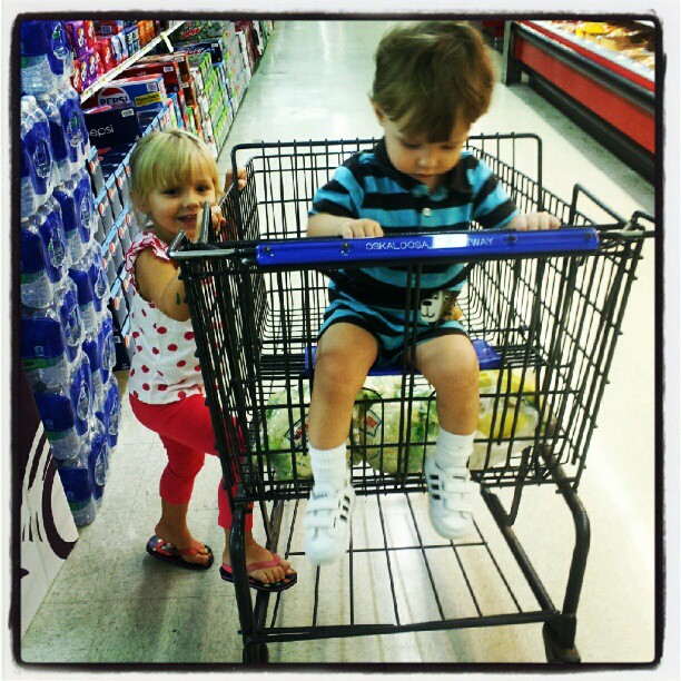 Wednesday was our first day back at Mom’s Group after summer break, and I somehow managed to make it with the little two ON TIME. I also managed to take them to the small-town grocery store on the way home, as we were experiencing a human food shortage, and the vet, as we were having a diabetic-dog food shortage emergency. They were both excellent shoppers, but Essie is going to have to get used to storytime again…..she wasn’t happy to be left in the room (even with two of her cousins there and me just down the hall).