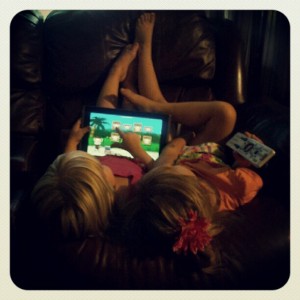 and the girls playing a game together before bed.
