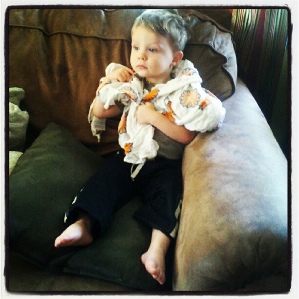 Sunday was my day out with Mama Mash, but before I left, I got to witness this preciousness: an 18 month old and his blanket’s new “Very Important Lovey” status.