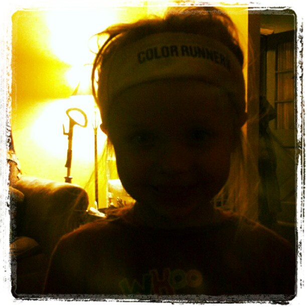 My mom, two of my SILs, my cousin, and a few others had a team in the Color Run on Saturday. It was COLD and AWESOME. Then a certain little girl took my headband. Isn’t she CAH-UTE?! (I know it’s dark….it was past her bedtime)