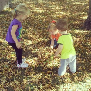 The leaves are falling! One of my favorite things about living in the country is that we can leave them in the yard to pile up, play in, and just enjoy rather than bag up and get rid of like we had to do in town.