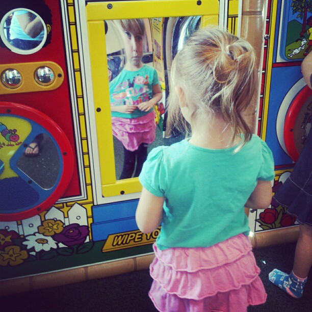 Ivy wasn’t too sure about the mirror at CFA until I made myself look funny, too (this may be the only picture she hasn’t smiled for in MONTHS).
