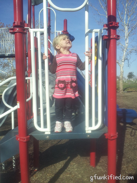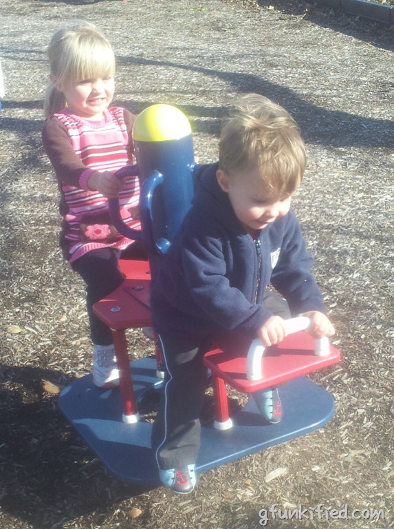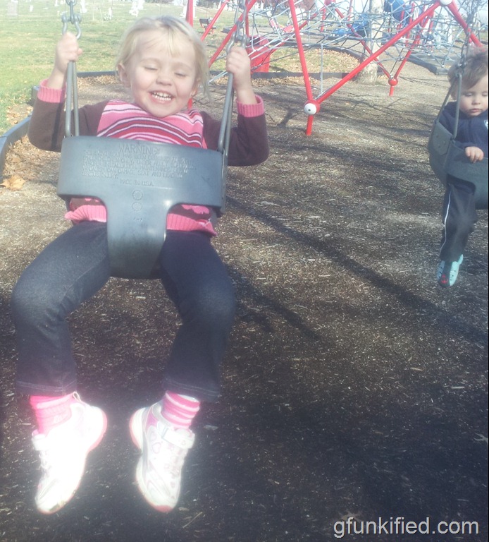 It was chilly, and we weren’t all that prepared, but we stopped at a playground on the way home and played for a while. The giggles and sunshine made it all worth it.