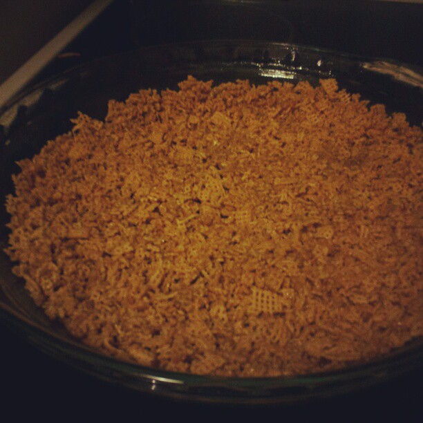 –For dessert, I made a very easy pumpkin pie. Literally, the day before Thanksgiving, I saw this recipe on Don’t Speak Whinese for a pie crust made with Chex. I used the Honey Nut Chex, and the recipe off of the Pumpkin Pie Filling can and it was incredibly easy and really delicious. I actually baked the whole thing the night before and then heated it back up for a few minutes in the 350 degree oven while we ate dinner, and it was still fantastic.