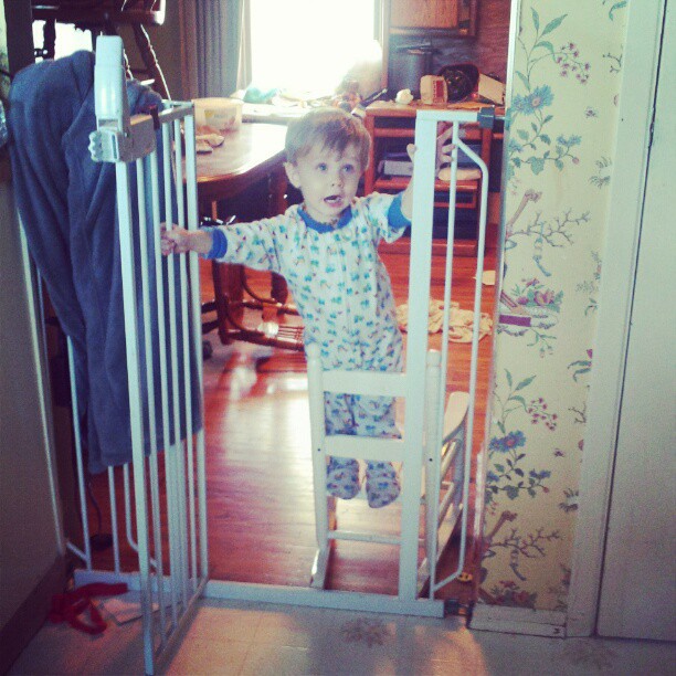 Ervin is now 20 months old and a HANDFUL. At this particular moment, he had grabbed the rocking chair that his big sister had left out, climbed on it and reached the gate. He then proceeded to open and close it, each time yelling “Mama!” while I watched him from the kitchen and made dinner.