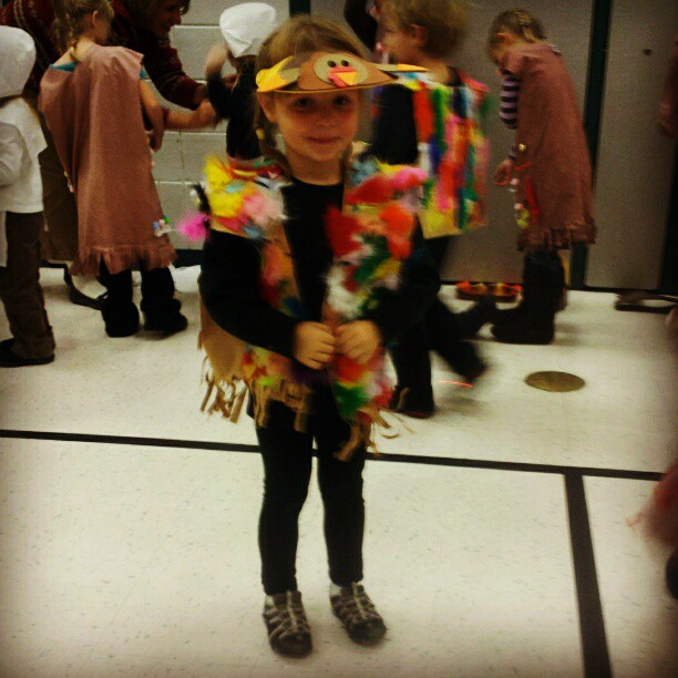 Ivy had her Thanksgiving skit in kindergarten on Friday. She was one of the turkeys, and she was a fabulous turkey. There’s a video but I can’t get it off of the camera. Sigh.
