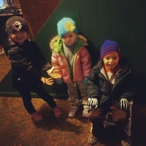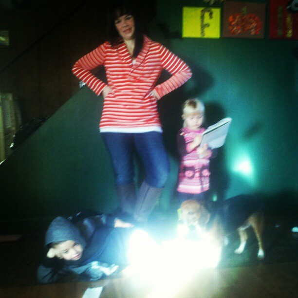 I had some good second day hair and got “dressed up” (cute sweater! skinny jeans! boots!) for a morning out, so I asked Ivy to take my picture (shut up). I got photobombed by two kids and a dog.