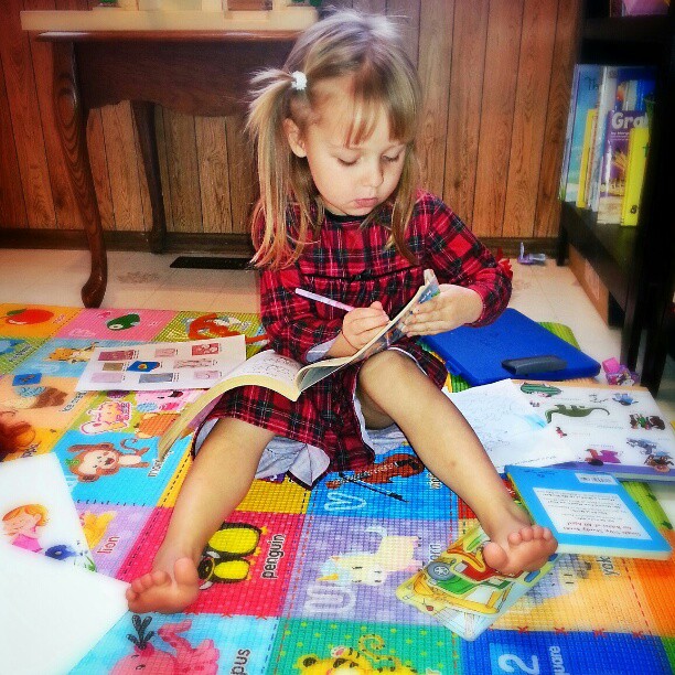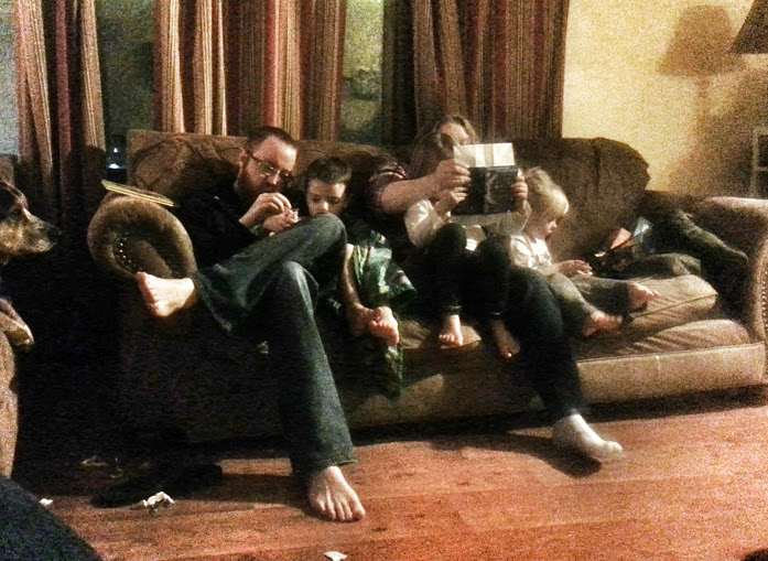 We have some aunts and uncles visiting from AR this weekend. Two of them came on Saturday and brought the kids books for Christmas, then everyone proceeded to climb on the couch together and read them.