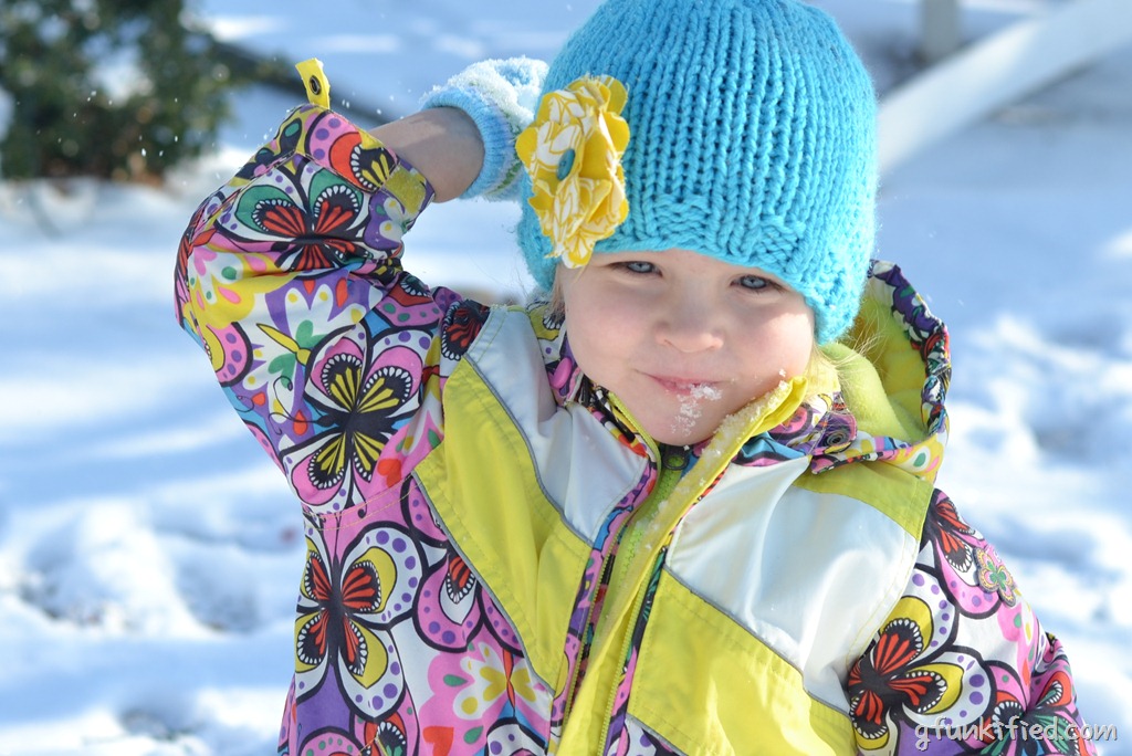 Yay for fun! And thanks! For some reason, Essie, with her blond hair and colorful clothes, always takes a good snow picture.