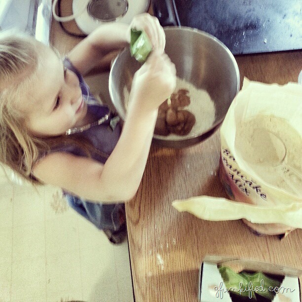 We make a lot of muffins here, for a very popular, freezable, quick gluten free breakfast. And the littlest princess really likes to help.
