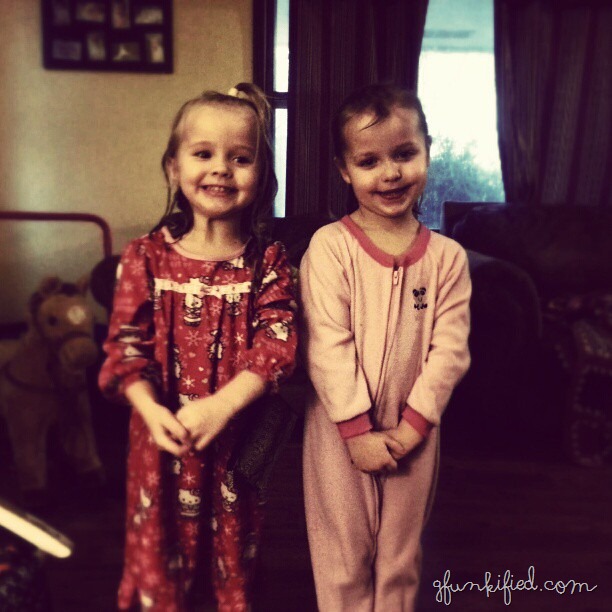 Don’t these girls look so sweet and innocent? Yeah, it was a “let’s fight and bicker and fight some more until mom forces us out of the bathtub to separate us” kind of day. But at least the were clean and in pajamas before supper time.