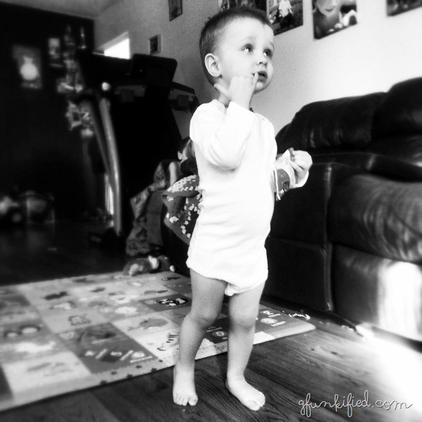 Erv got to actually take a bath by himself. I caught his signature “pulling one over on mama” look: