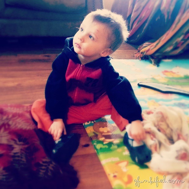 Ivy had off of school Thursday and Friday because they were doing kindergarten roundup in her classroom both days. Did I mention that hubs has been gone all week? So I ended the school week with three kids home all day, stuck in the house because of the stupid weather. But I’m not bitter. Nope. And then this guy got to stay up late because he took a late nap and I was tired. But he was charming, so that helped a tiny bit.