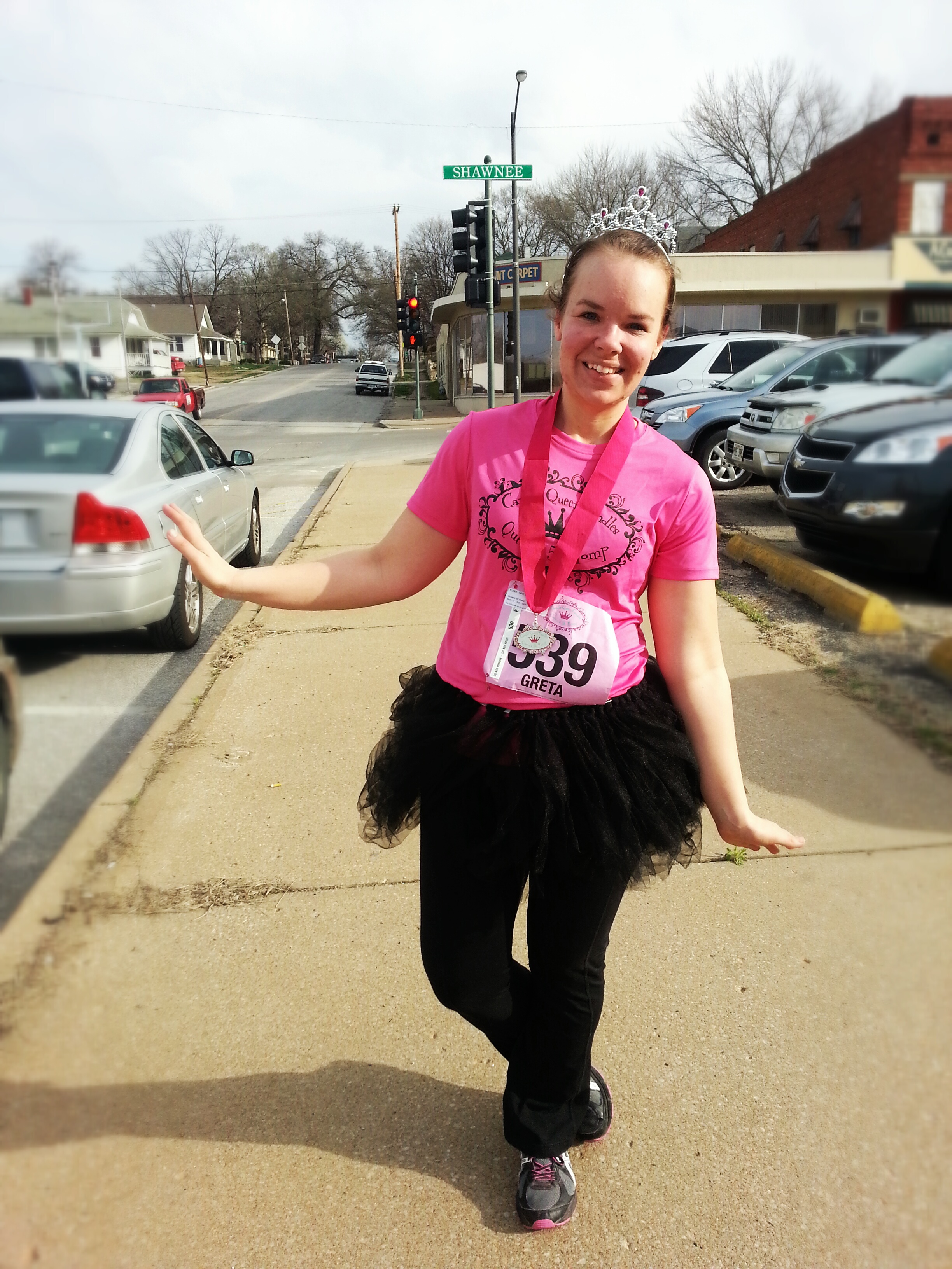The tutu is cool, but the tiara is AWESOME! Way to go with the running! It feels so great to work your body that way.