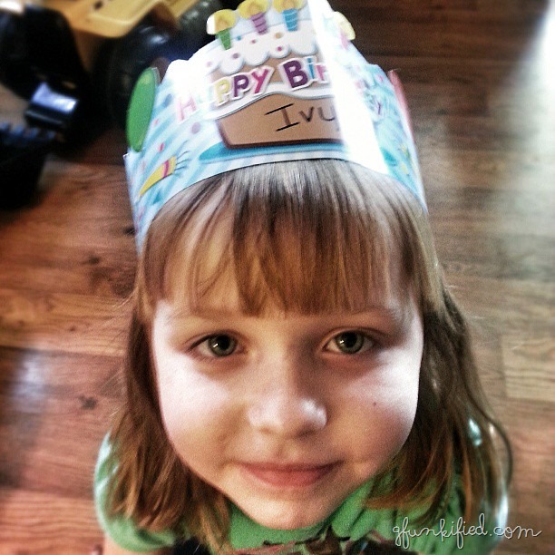 Ivy, who’s real birthday is in July, had her faux-birthday celebration in kindergarten on Monday. Gluten free brownie mix for the win!