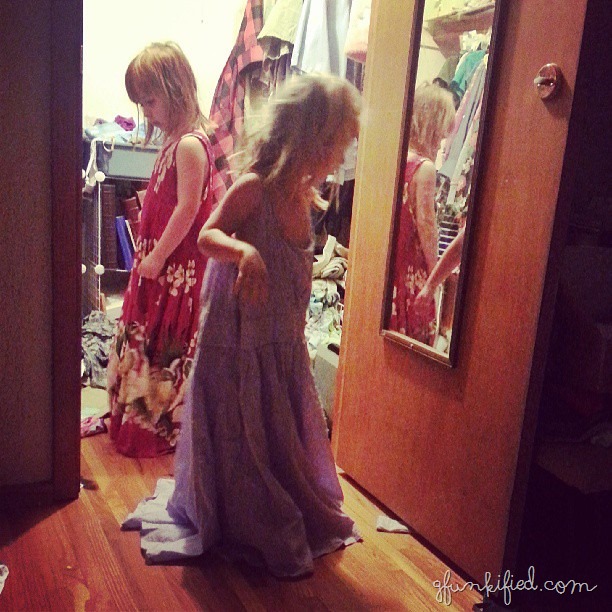 A laaaazy Sunday started with me in bed and the girls going through my closet.