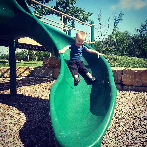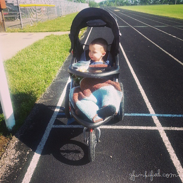 I wasn’t doing too well running with the stroller during bible school (that stuff is hard, YO), so we took a break after a mile to go play on the playground.