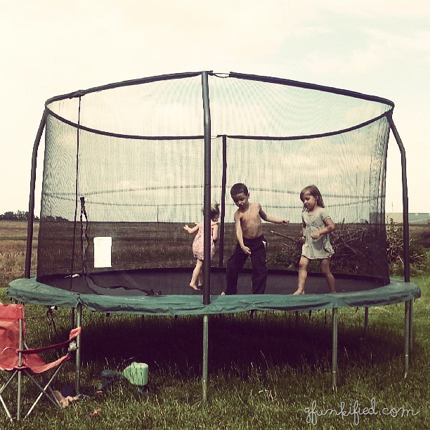 Glad to know that my kids aren't the only ones that like to run around half-dressed! 🙂 Every time, I see your tramboline pics I want to get one so, so bad… Have a great week.