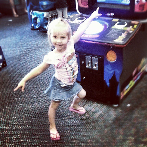 We celebrated Ivy’s birthday (again) with a trip to Chuck E. Cheese’s. This is my favorite picture from the night: