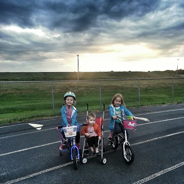 Ivy officially turned six! When she went to bed, she talked and talked about how much it rained all day, but really, we had fun. We made bracelets and painted sun-catchers and magnets, and when it finally stopped raining, we went to the track so they could ride their bikes, She had been wanting to ride since the girls had gotten their new baskets and streamers, and the track is one of the few places around here that they can safely go for bike rides (Henry wasn’t feeling so hot and wanted to stay home and play Minecraft).