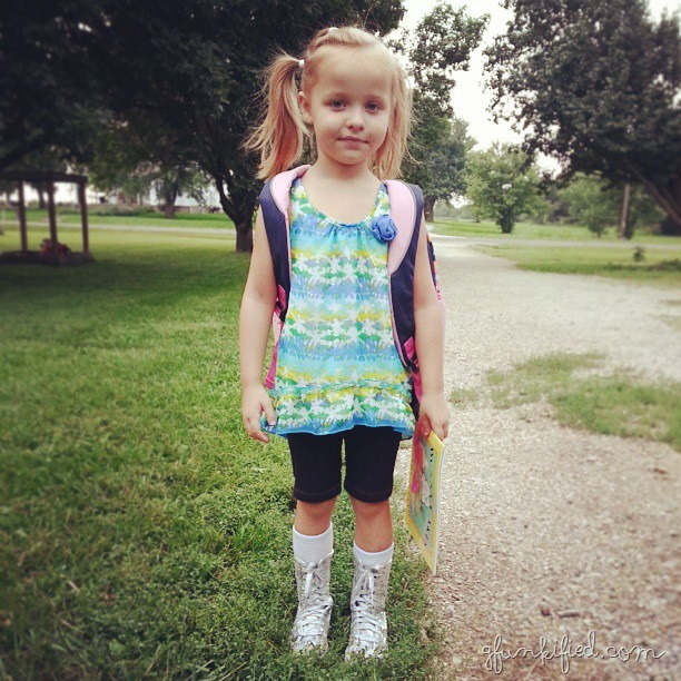 Sometimes, while I’m trying to get everyone ready for school, this girl drives me MAD. (Actually, they all pretty much take turns) But it’s hard to stay angry at a girl in pigtails and tall sparkly sneakers, even when she’s smirking at me.