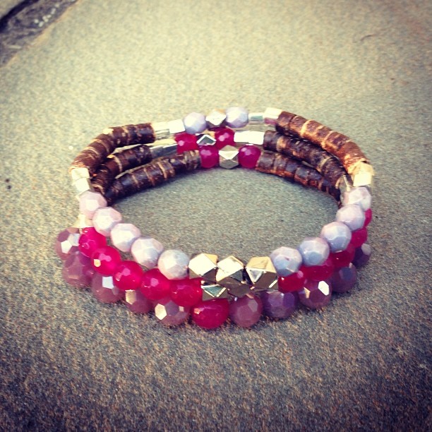 These exclusive bracelets from simply om are part of the Perseverance Trio Bracelet stack. These bracelets are stretch and will fit most wrists. They can be worn alone or together depending on how much bling you want to bring! Made of faceted rubies, fire polished Czech crystals, coconut beads and silver spacer beads, the bracelets can be worn with everything from jeans to an elegant LBD. Be sure to make an entrance, whatever you do.
