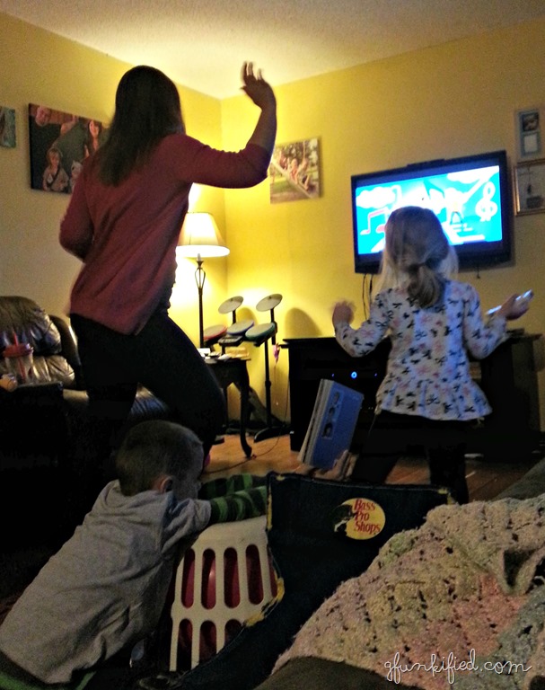 I recently said that I don’t like to get down on the floor and play with my kids. But, there are things I love to do with them….I love jumping on the trampoline, I love cranking up the radio and shaking some booty when we’re cleaning or cooking, and I love interactive video games that we can all play together (I’m not too excited about board games yet, though….those require more patience than I have at this point in our lives).