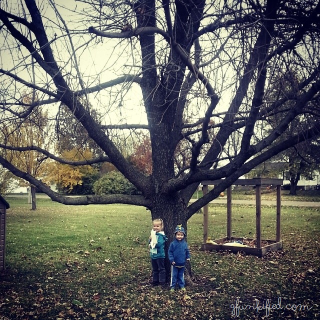 We had a crazy wind storm Sunday night, and woke up to ALLLLL the leaves having been blown off the big trees out front (how’s my grammar there? I can’t tell if it’s right, or really, really wrong.)
