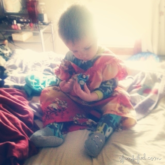 Sunday was a particularly ugly day in stomach-bug land, and after Great Wolf Lodge, I was exhausted. I didn’t take any pictures, but I did take a very short video. (But, I don’t really know how to embed it here, so….if the link works, you can experience the absolute adorableness! If not…..sorry)