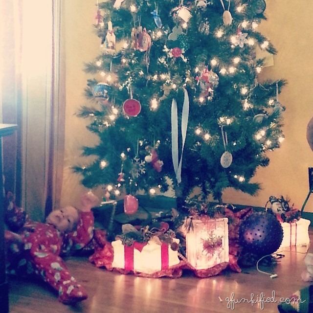 Our tree. With toddlers and cats and falling ornaments and toys.